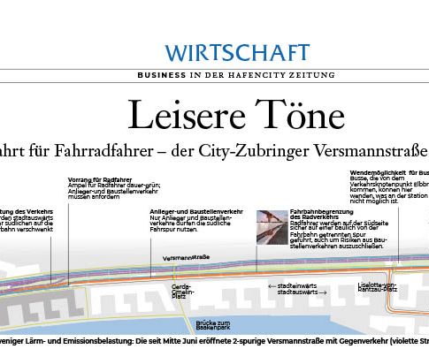 Die eigene Unzufriedenheit der HafenCity- Stadtplaner und die energische Beteiligung der Anwohner – vertreten durch die Verkehrs AG im Netzwerk HafenCity e. V. – haben zu einer neuen Verkehrsführung mit weniger Lärm und weniger Emissionen geführt.