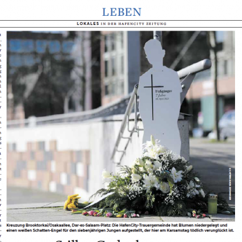 HafenCity Zeitung Mai 2023: »Stilles Gedenken – an einer viel befahrenen Kreuzung«