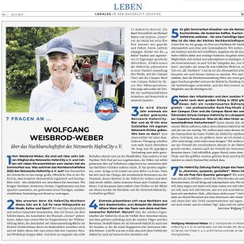 HafenCity Zeitung Juli 2023: »7 Fragen an Wolfgang Weisbrod-Weber«