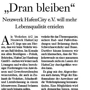 Verkehr: Nach einer Umfrage unter Mitgliedern des Netzwerks HafenCity e. V. und einem Austausch mit Behörden und Polizei …