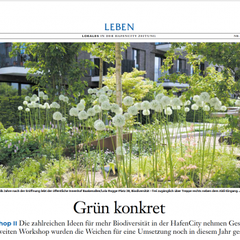 Die zahlreichen Ideen für mehr Biodiversität in der HafenCity nehmen Gestalt an. Im zweiten Workshop wurden die Weichen …