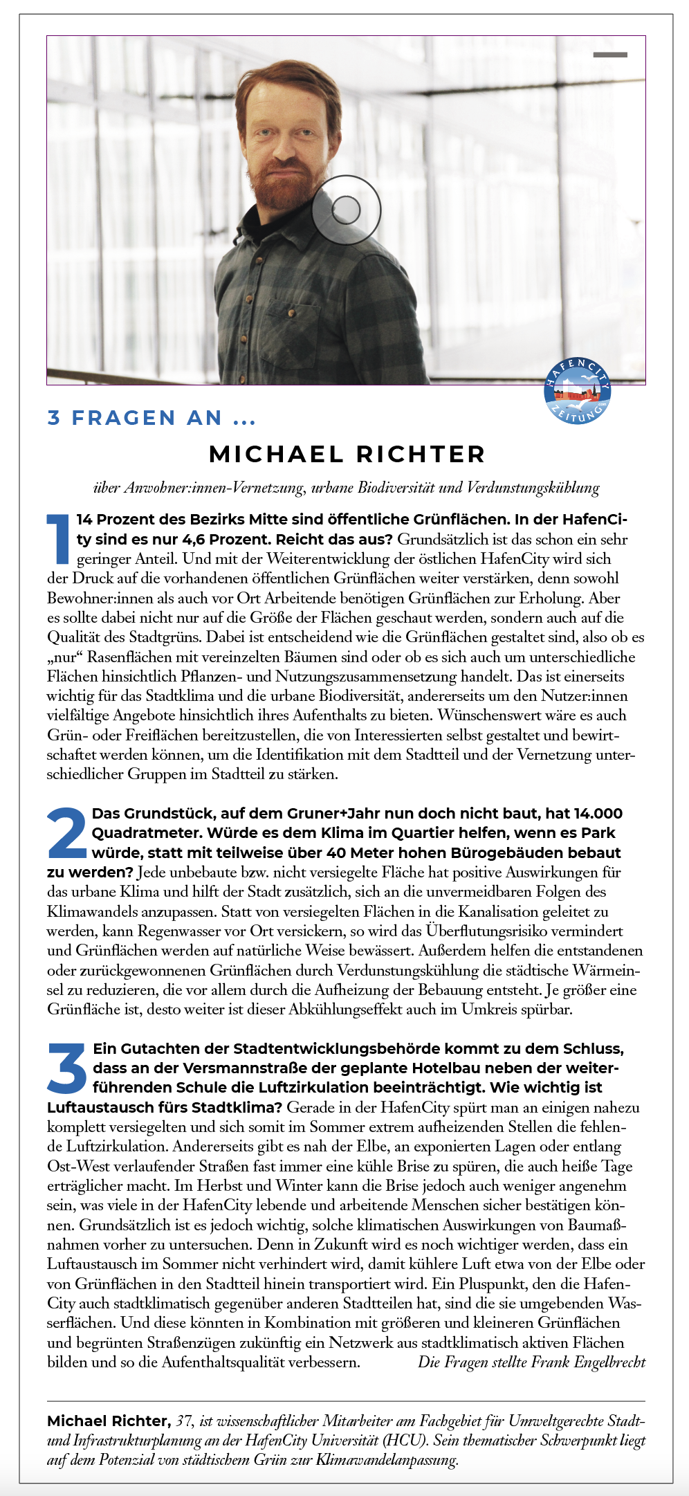 Das Netzwerk HafenCity e. V. hat daher Politik und Behörden aufgefordert, für dieses Baufeld einen Bürgerbeteiligungsprozess zu starten – und es nicht ganz schnell einem Investor anhand zu geben. Gerade bei diesem einmaligen Baufeld, das entscheidend ist für Lebenswert, Klima und Nachhaltigkeit im Quartier, müssen die Menschen, die hier leben, lernen und arbeiten, gehört werden. Sie wissen am besten, was die HafenCity an diesem Ort wirklich braucht.
