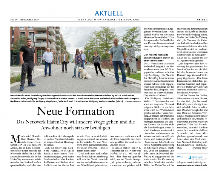 HCZ 09/20: Neue Formation - Das Netzwerk HafenCity will andere Wege gehen und die Anwohner noch stärker beteiligen