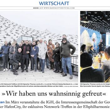 Im März veranstaltete die IGH, die Interessengemeinschaft der Gewerbe in der HafenCity, ihr exklusives Netzwerk-Treffen …