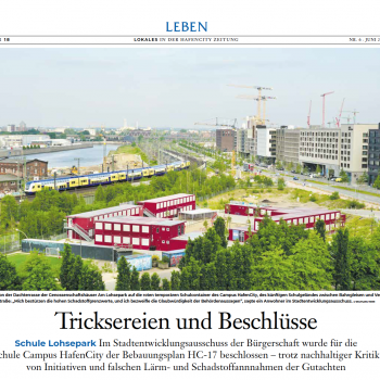 Die Teilung des Bebauungsplans für den Schulcampus und den Verlagsneubau von Gruner + Jahr im Lohsepark sorgt für …