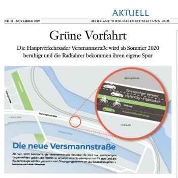 Die Hauptverkehrsader Versmannstraße wird ab Sommer 2020 beruhigt und die Radfahrer bekommen ihren eigene Spur.