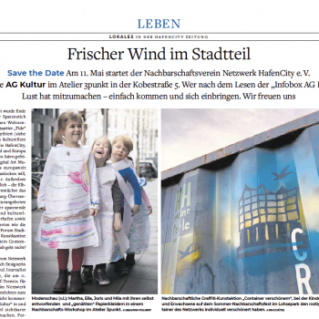 Save the Date: Am 11. Mai startet der Nachbarschaftsverein Netzwerk HafenCity e. V. die neue AG Kultur im Atelier 3punkt …