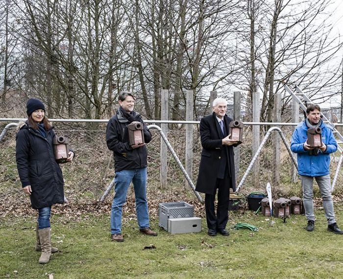 Kurz vor dem Weltspatzentag (20. März) hat der Nabu gemeinsam mit dem Netzwerk HafenCity zwanzig neue Unterkünfte im Lohsepark aufgehängt, die meisten davon in der sogenannten Wildnis im Park. Vor dem Aufhängen wurden die schweren Holzbeton-Häuser mit Stroh gefüllt, damit es dort von Anfang an gemütlich ist – und nach anderthalb Stunden war das erste Spatzenpaar eingezogen.